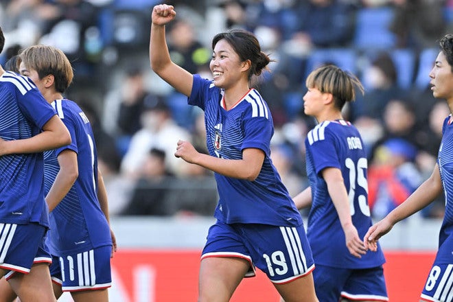 【画像】谷川萌々子の得点で日本が先制!|写真:金子拓弥(サッカーダイジェスト写真部)