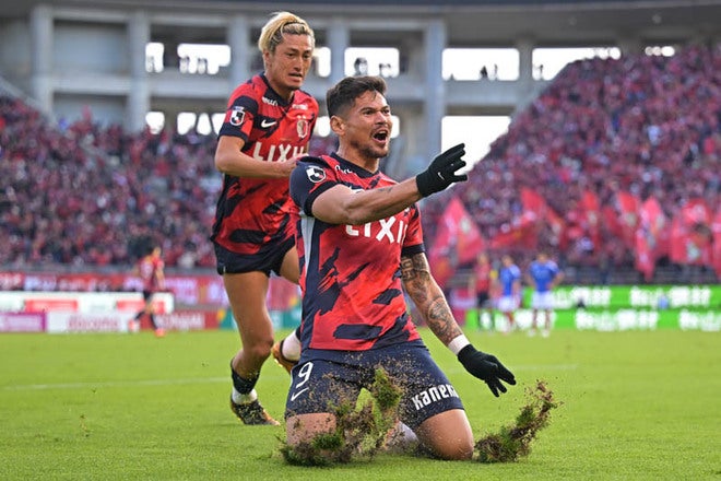 【画像】レオ・セアラの強烈な一撃で鹿島に先制点をもたらす!|写真:金子拓弥(サッカーダイジェスト写真部)