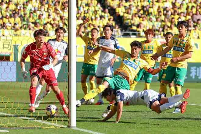 【PHOTO】20分、泉柊椰(大宮)がダイビングヘッドで押し込み大宮が先制|写真:梅月智史(サッカーダイジェスト写真部)