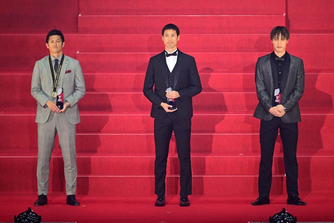【画像】フェアプレー個人賞を受賞した植田直通&前川黛也&大迫敬介|写真:金子拓弥(サッカーダイジェスト写真部)