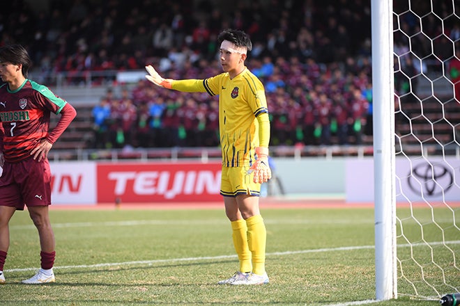 【選手権3回戦PHOTO】神戸弘陵学園0-1尚志|神戸弘陵学園のゴールキーパー、鹿屋舷(3年/エベイユFC神戸出身)は頭にテーピングを巻きプレー!|写真:鈴木颯太朗