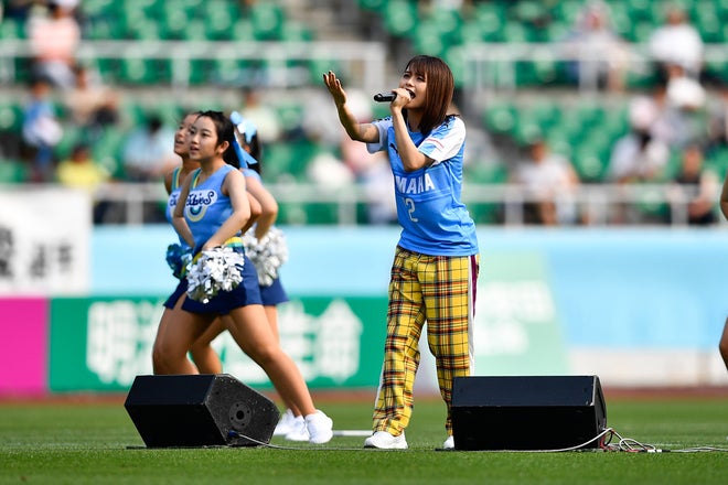 【足立佳奈 PHOTO】後半巻き返しの立役者?磐田の2019年シーズンソングを歌う ”美女” がハーフタイムライブで磐田サポーターを盛り上げる!