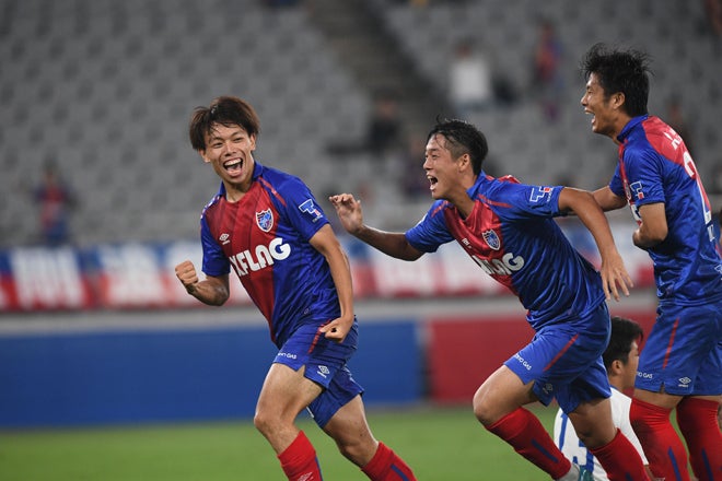 【天皇杯2回戦PHOTO】50分、均衡を破るゴールを内田(左)が決める。この得点が決勝点となりFC東京が勝利。写真:徳原隆元