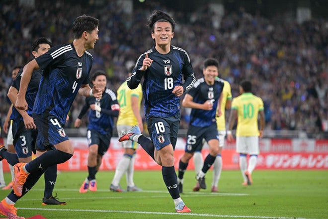 上田綺世|2025年10月14日 国際親善試合 日本代表対ブラジル代表|写真:サッカーダイジェスト