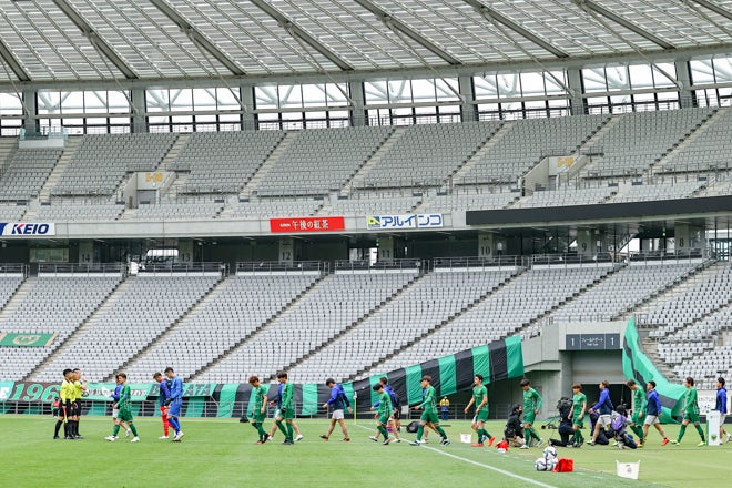 【J2第2節PHOTO】東京V0-2山形|味の素スタジアムに入場する審判団と両チームの選手たち。|写真:塚本凜平(サッカーダイジェスト写真部)