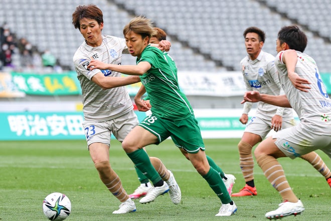 【J2第2節PHOTO】東京V0-2山形|熊本雄太(左)松橋優安(右)|写真:塚本凜平(サッカーダイジェスト写真部)