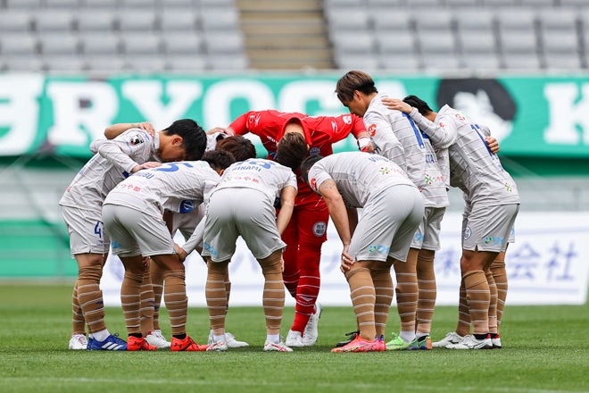 【J2第2節PHOTO】東京V0-2山形|円陣を組む山形のスターティングイレブン。|写真:塚本凜平(サッカーダイジェスト写真部)